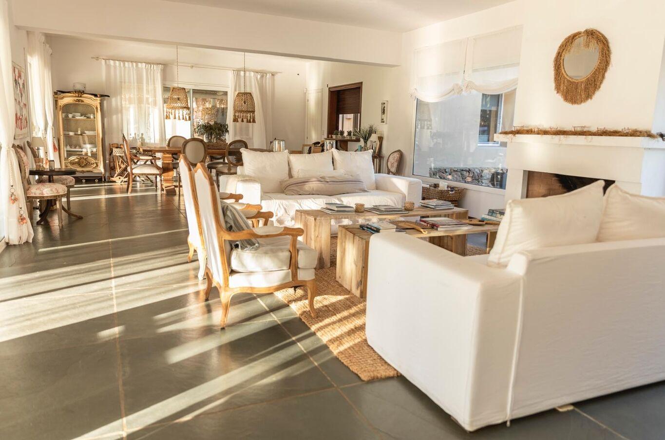 Living con estufa exterior para el atardecer más fresco y otras épocas del año.